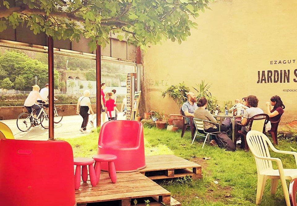 El jardín secreto es una terraza en uno de los patios de la antigua fábrica de galletas Artiach, en la península de Zorrozaurre (hoy isla por obra y gracia de Zaha Hadid).
